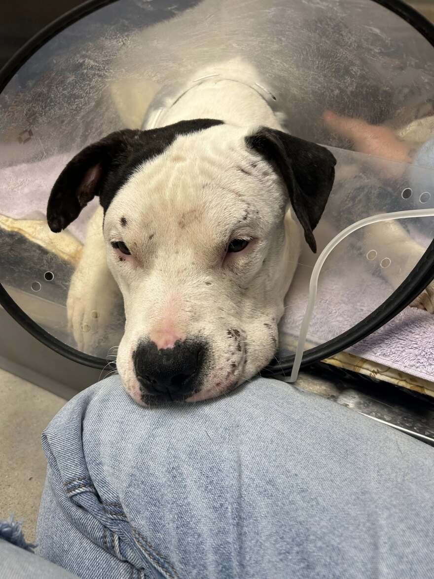 Craven County Animal Protective Services was called to a home on John Street in New Bern for an animal welfare check on October 17th and found a severely injured dog—now named Mixtape -- who required immediate medical attention and was hospitalized.