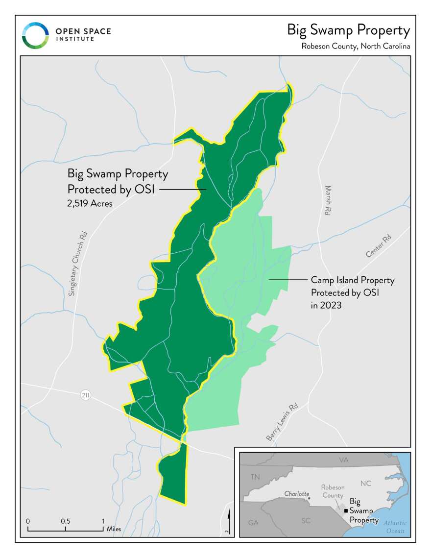 The Open Space Institute and the North Carolina Wildlife Resources Commission announced the permanent protection of the Big Swamp tract—a sprawling 2,519-acre landscape in Robeson County.