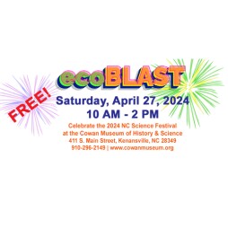 As part of the 2024 North Carolina Science Festival, the Cowan Mueum will host a free, public event called ecoBLAST This will be a fun, educational, family-friendly celebration of our planet. Exhibits, food trucks, live animals, educational activities, and demonstrations are planned for the public to enjoy.