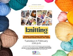 Come out to the Kinston-Lenoir County Public Library every Tuesday in February at 1:00 p.m. for a knitting workshop! An expert knitter will demonstrate how to cast on and get started on your first knitting project. Participants should bring two size 7 or size 8 knitting needles and soft yarn (not cotton).
