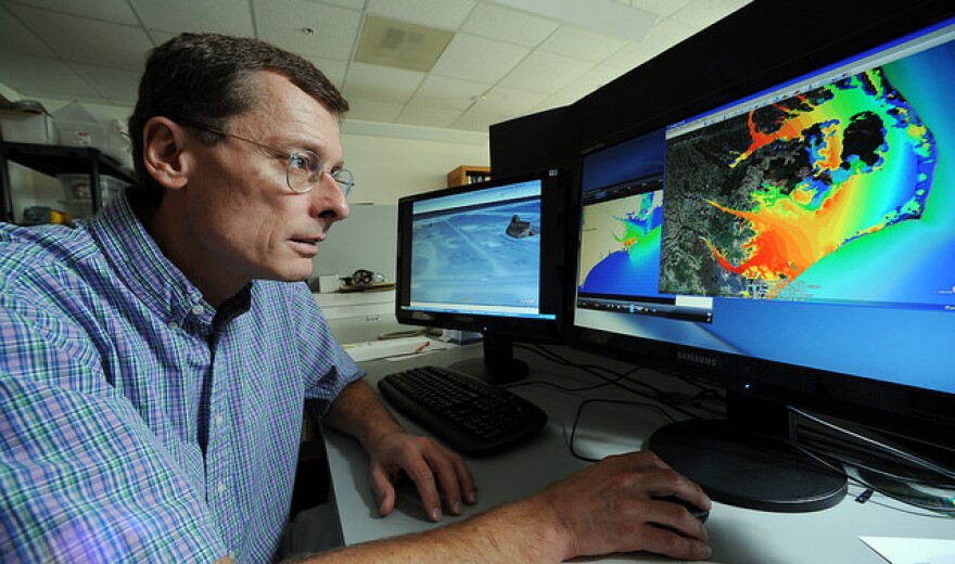 Director of the University of North Carolina's Institute of Marine Sciences in Morehead City Rick Luettick helped develop ADCIRC, a computer model for predicting storm surge and flooding. He estimated as much as 15 feet of storm surge could occur along beaches from Cape Fear to Cape Lookout.