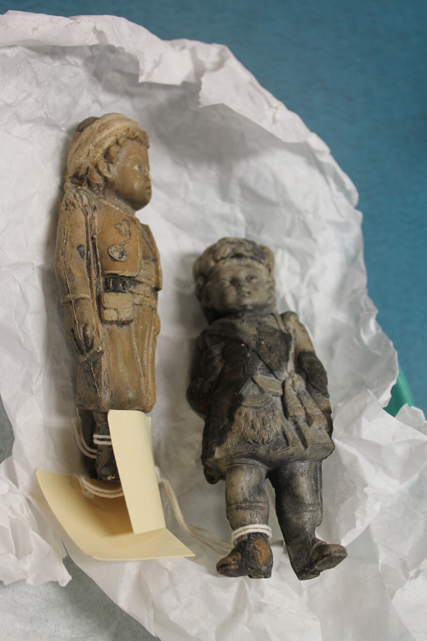 Michelle Crepeau is a conservator at the North Carolina Department of Natural and Cultural Resources - North Carolina Maritime Museums, and she carefully restores these items. Crepeau describes the ornate rubber baby rattles that depict joyful scenes of childhood as "eerie" after spending a century on the ocean floor.
